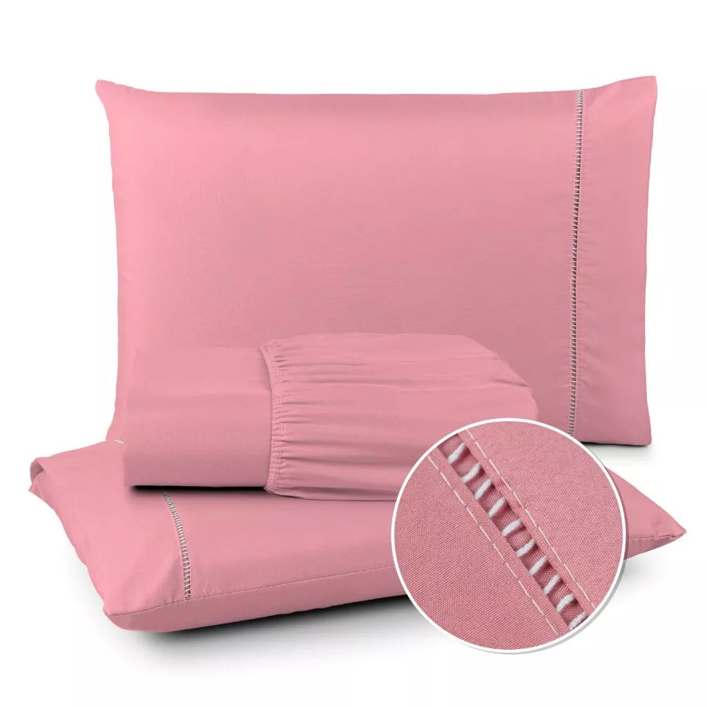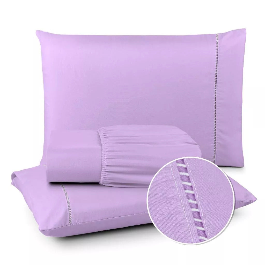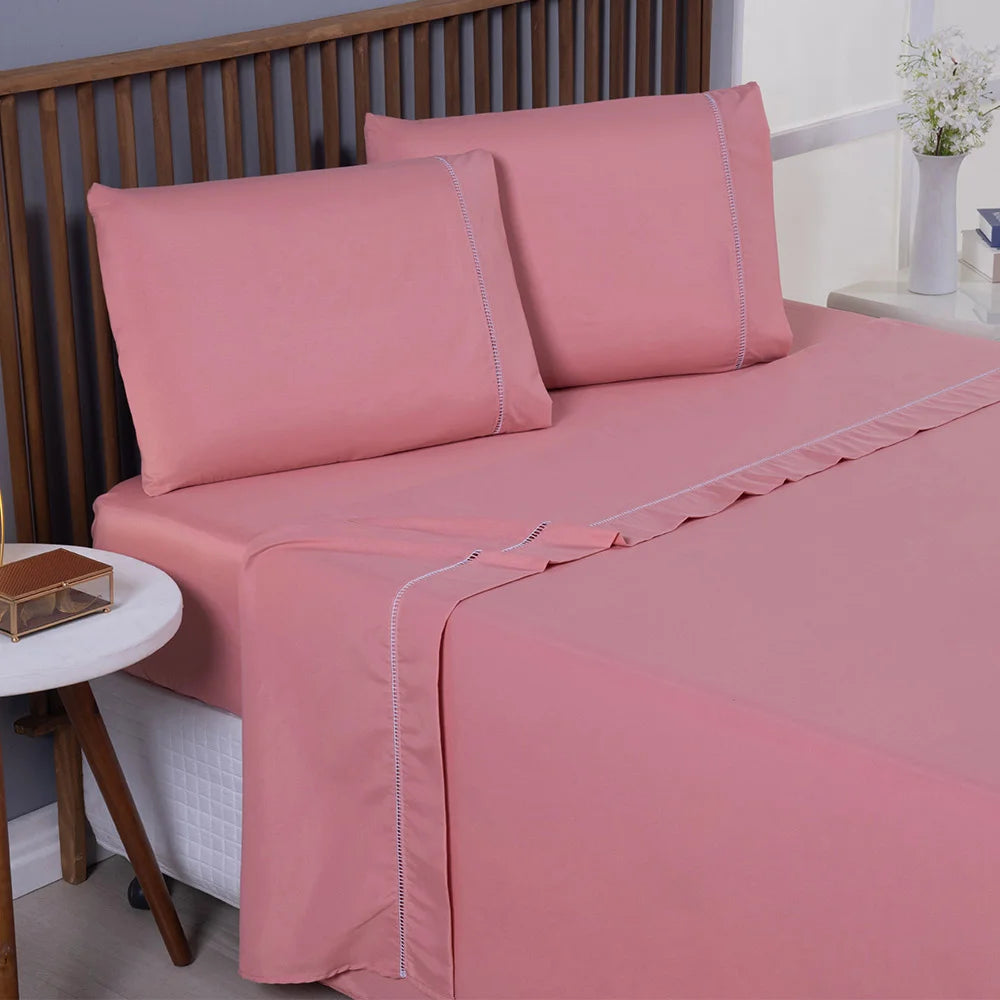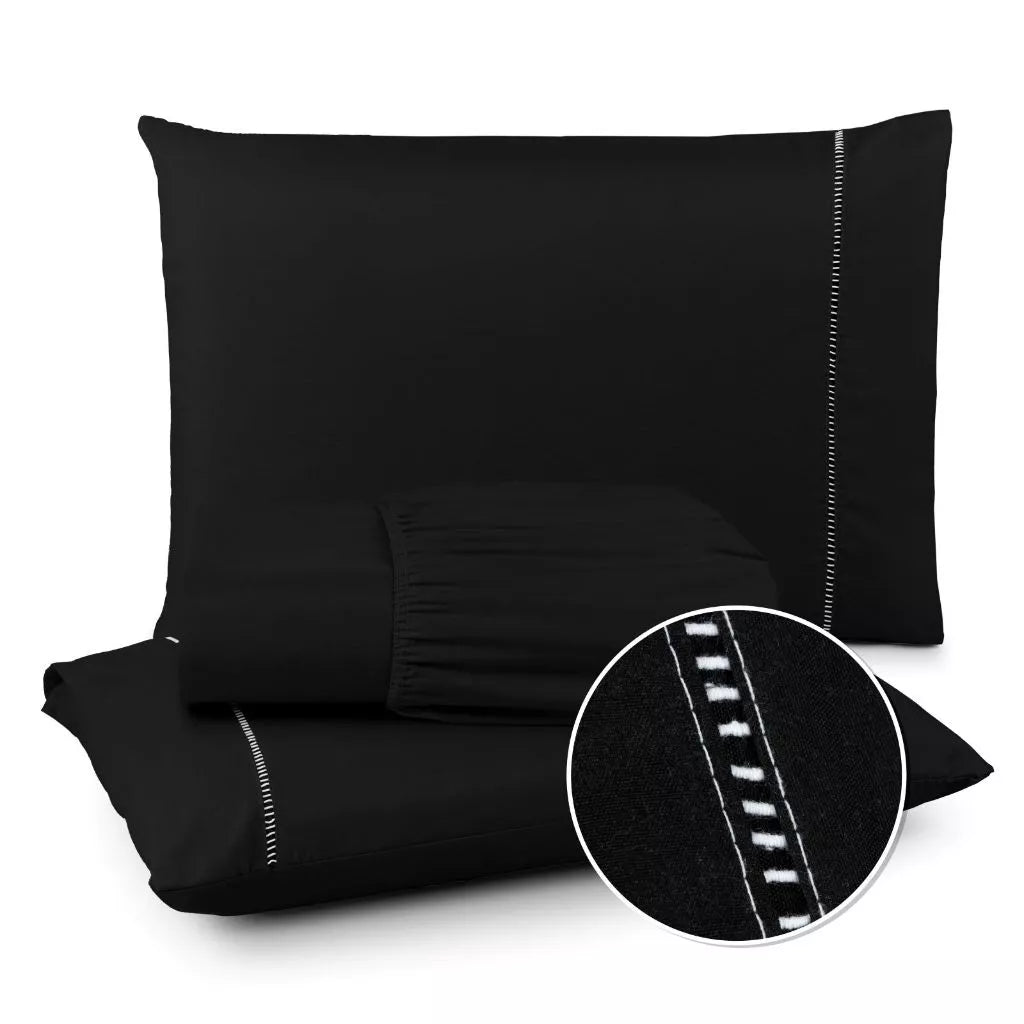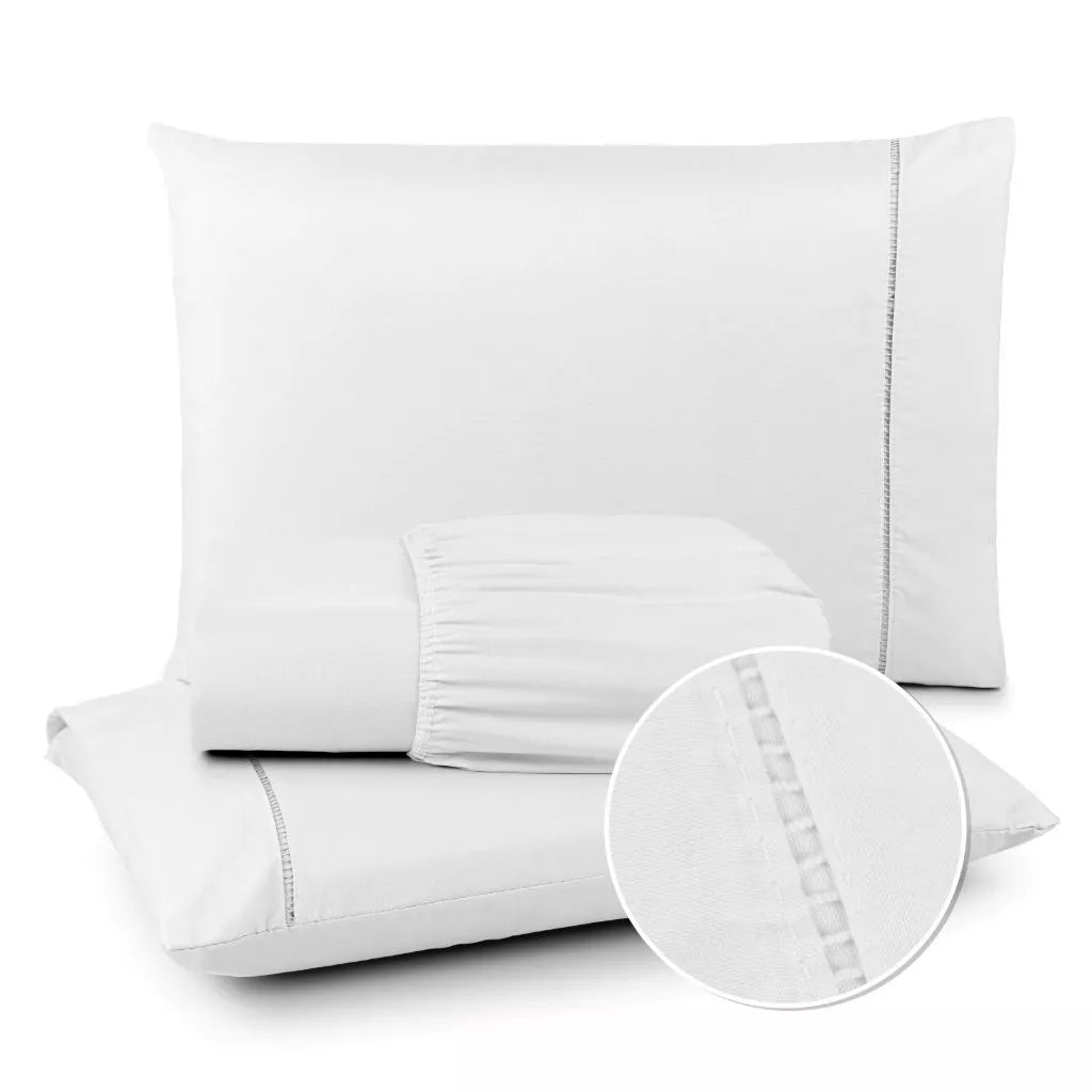 Jogo de Lençol 400 Fios Ponto Palito - Conjunto Casal com 3 peças