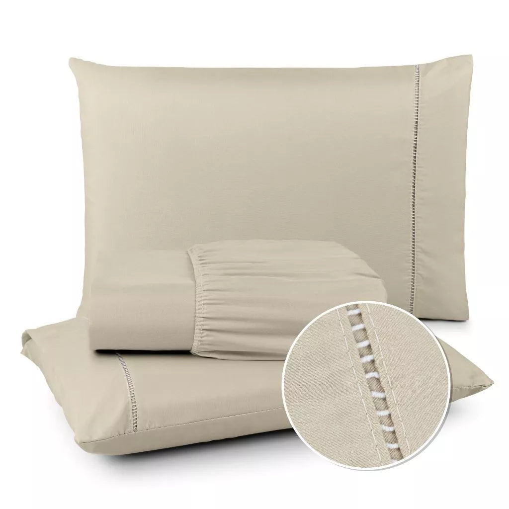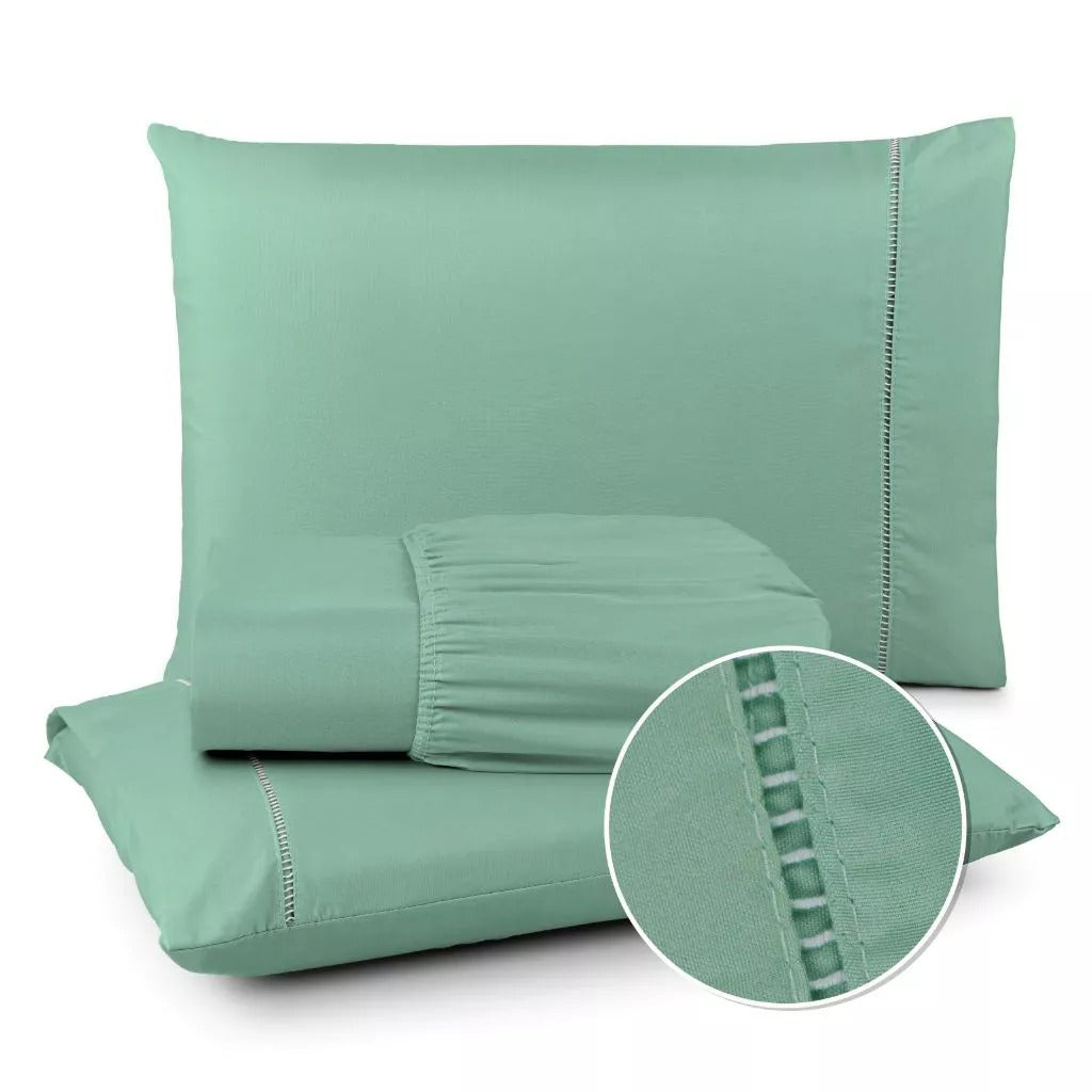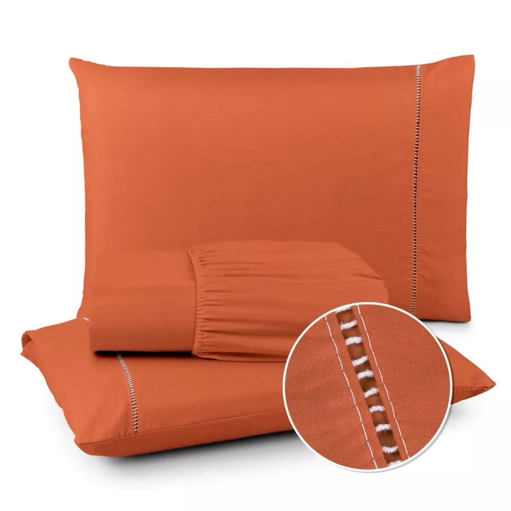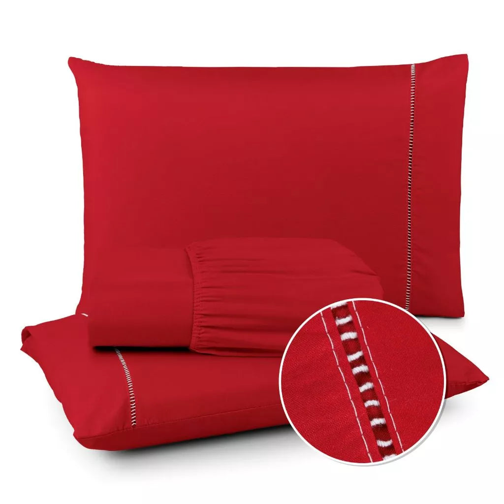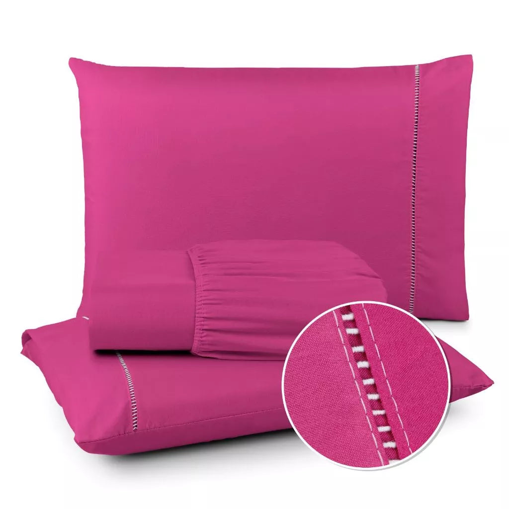 Jogo de Lençol 400 Fios Ponto Palito - Conjunto Casal com 3 peças